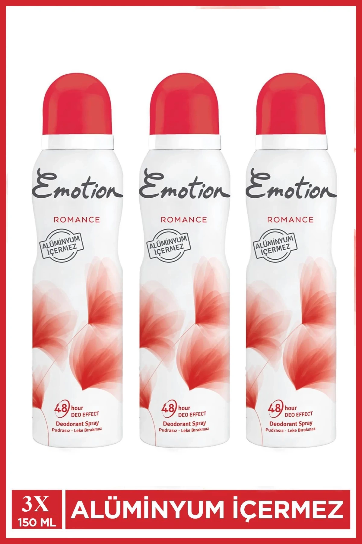 - 3 Adet Emotion Romance Kadın Vegan Deodorant 150 Ml Hızlı Kurur, Leke Bırakmaz
