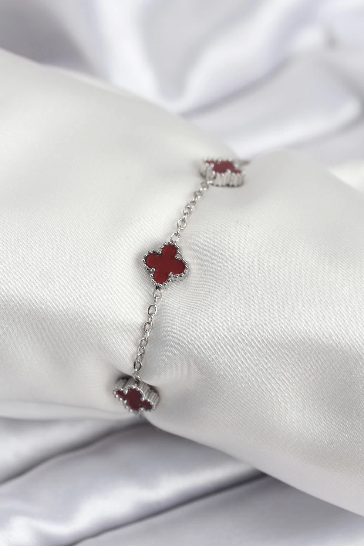 316L Çelik Gümüş Renk Bordo Baby Boy Yonca Kadın Bileklik