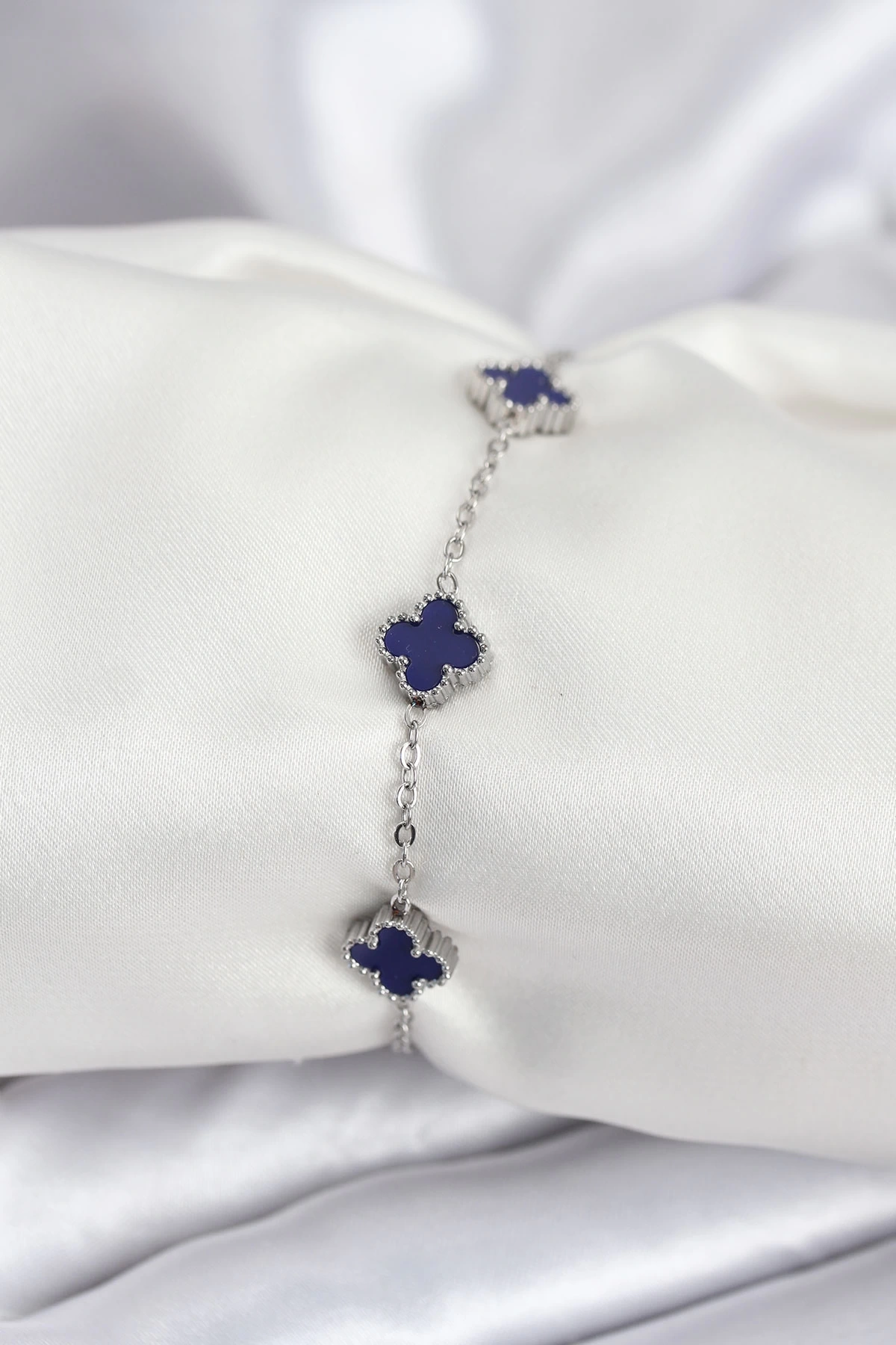 316L Çelik Gümüş Renk Lacivert Baby Boy Yonca Kadın Bileklik