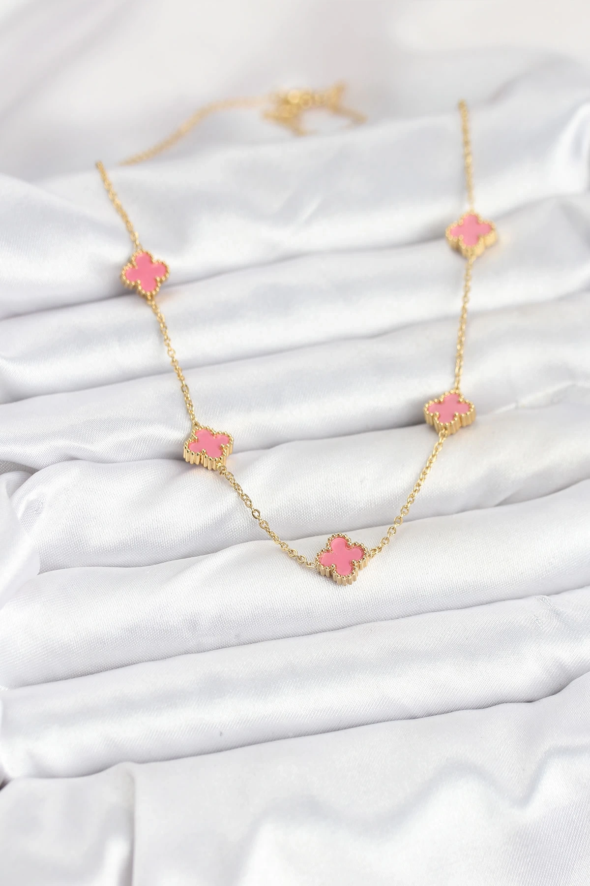 316L Çelik Zincir Gold Renk Pembe Baby Boy Yonca Kadın Kolye
