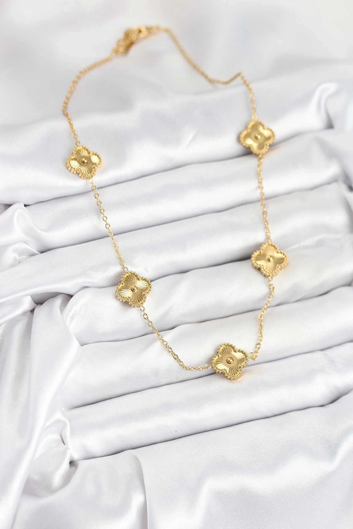 316L Çelik Zincir Gold Renk Yonca Kadın Kolye