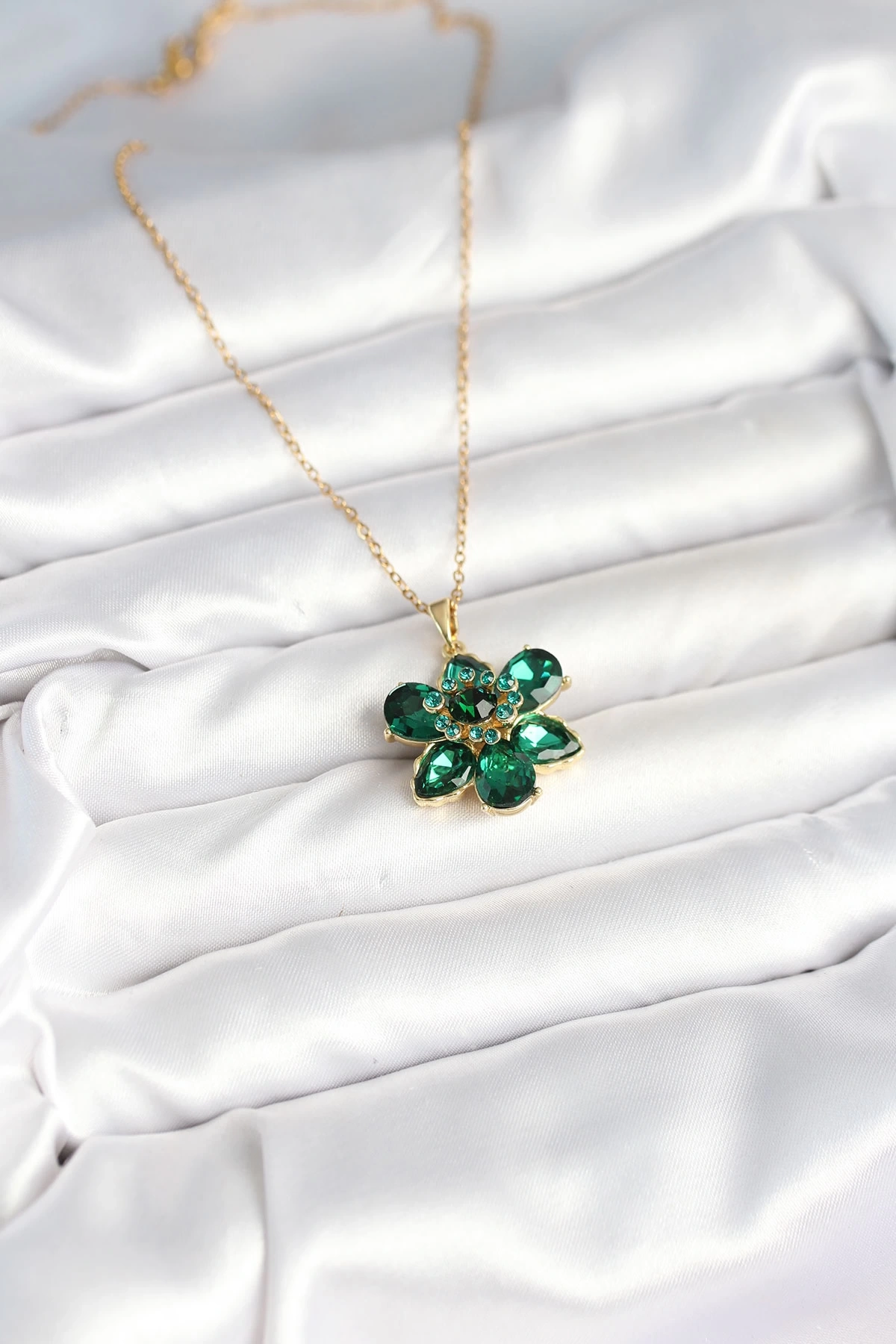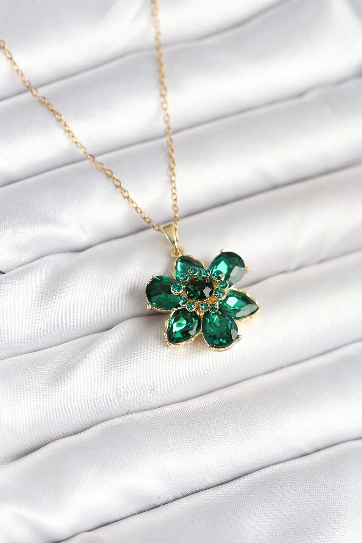 316L Çelik Zincirli Yeşil Çiçek Model Kadın Kolye