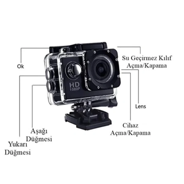 4K SU GEÇİRMEZ WI-FI AKSİYON KAMERASIÜrün Özellikleri4K su geçirmez Wi-Fi aksiyon kamerası, açık hava sporlarından su altı çekimlerine kadar her ortamda mükemmel performans sunar. Fotoğraf çekimi, dijital video kaydı, ses kaydı ve anlık görüntü yakalama özellikleriyle profesyonel sonuçlar elde etmenizi sağlar. 16 MP çözünürlüklü lensiyle yüksek netlikte fotoğraflar çeker, 4K çözünürlükte (3840x2160p) videolar kaydeder. Geniş 170° görüş açısı sayesinde geniş kadrajlı çekimler yapmanıza olanak tanır. Suya dayanıklı özel kasasıyla 30 metre derinliğe kadar kullanılabilir ve dalış, yüzme veya ekstrem spor çekimlerinde güvenle tercih edilir. Dahili Wi-Fi özelliği sayesinde çekimleri anında telefon veya tablete aktarabilirsiniz. Çıkarılabilir ve şarj edilebilir bataryası uzun çekim süresi sağlar.Paket İçeriği1 adet 4K Su Geçirmez Wi-Fi Aksiyon Kamerası