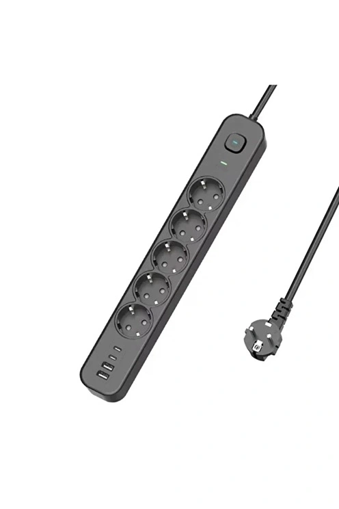 • 5 Prizli Akım Korumalı Uzatma Kablosu | 2xusb-a + 2xusb-c | 3680w - 2m Kablo