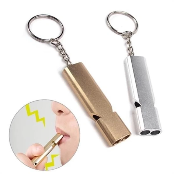 ALÜMİNYUM SOS DÜDÜK ANAHTARLIKÜrün ÖzellikleriYüksek ses gücü ve dayanıklı yapısıyla Alüminyum SOS Düdük Anahtarlık, doğa yürüyüşlerinden kamp aktivitelerine, spor etkinliklerinden acil durumlara kadar her ortamda güvenle kullanılabilir. Kompakt boyutu sayesinde anahtarlık olarak kolayca taşınabilir ve her an ulaşılabilir durumda olur. Paslanmaz çelik ve alüminyum alaşım malzeme yapısı, uzun ömürlü kullanım sunarken suya ve zorlu hava koşullarına karşı da dayanıklıdır.Acil durumlarda 150 desibele kadar ses çıkarabilen bu düdük, yardım çağrısı yapmak için mükemmeldir. Ayrıca evcil hayvan eğitimi, açık hava sporları, kamp, yürüyüş ve dağcılık gibi aktivitelerde de rahatlıkla kullanılabilir. Pürüzsüz yüzeyi ve ergonomik tasarımı sayesinde elde rahat tutuş sağlar ve kolay üfleme imkânı sunar.Hafif tasarımı (10 gram) sayesinde cebinizde, çantanızda veya kemerinizde fark edilmeden taşınabilir. Şık metalik rengiyle hem işlevsel hem de estetik bir görünüme sahiptir.Paket İçeriği1 adet Alüminyum SOS Düdük Anahtarlık