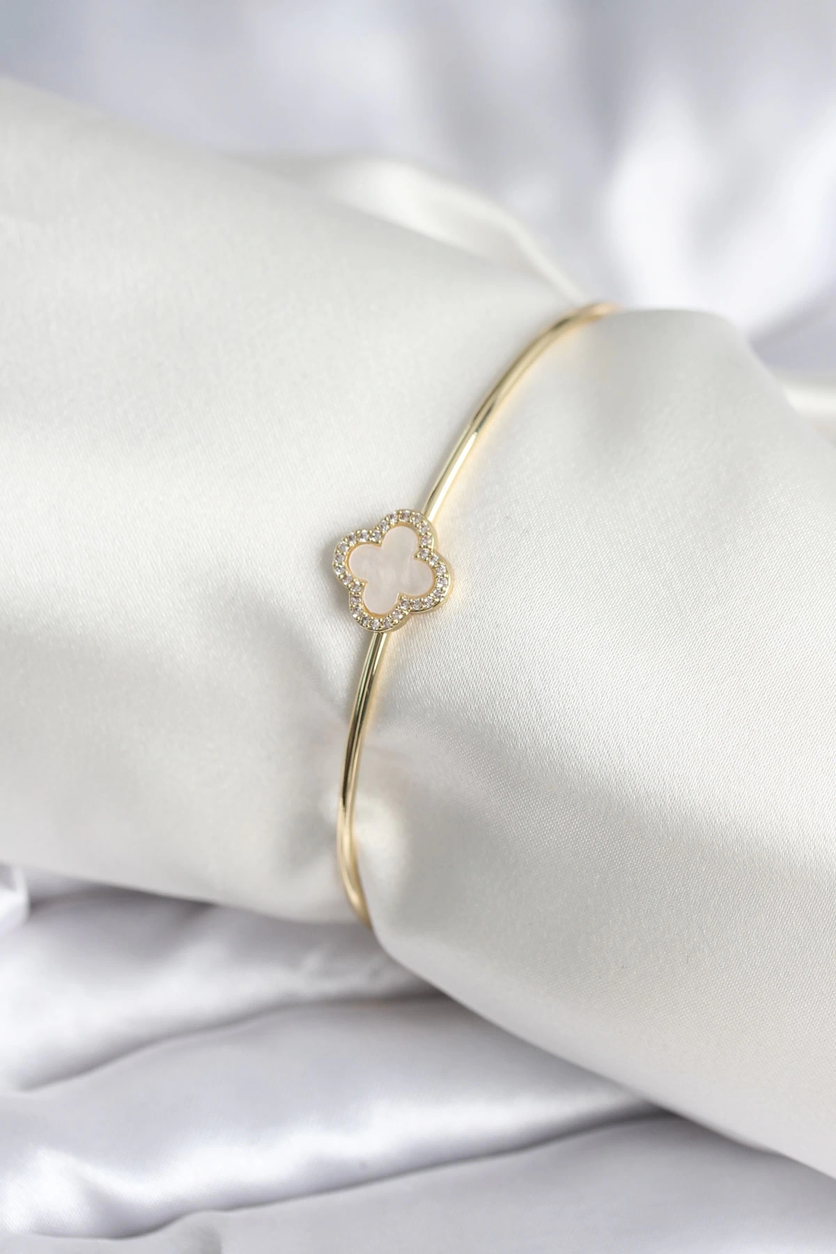 • Beyaz Sedefli Yonca Model Gold Renk Kadın Bileklik