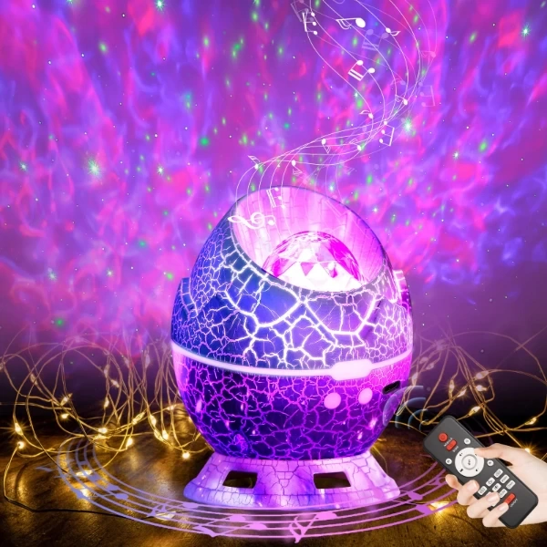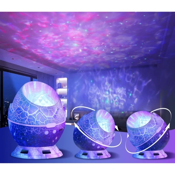 ÇATLAK DİNOZOR YUMURTASI TASARIMLI PROJEKTÖRLÜ GECE LAMBASI BLUETOOTH ÖZELLİKLİÜrün ÖzellikleriÇatlak dinozor yumurtası tasarımlı projektörlü gece lambası, benzersiz görünümü ve işlevselliği ile evinize büyüleyici bir atmosfer kazandırır. RGB renk geçişleri ve 360 derece döner başlığı sayesinde odanızın tavanına ve duvarlarına yıldızlı ve renkli bir gökyüzü yansıtır. Dahili Bluetooth hoparlörü ile telefonunuza kolayca bağlanarak sevdiğiniz müzikleri çalabilir, gece lambası ve müzik keyfini aynı anda yaşayabilirsiniz. Uzaktan kumanda ile kolayca kontrol edilebilen bu lamba, çocuk odaları, yatak odaları ve oturma alanları için ideal bir dekoratif ve işlevsel üründür.Paket İçeriği1 Adet Çatlak Dinozor Yumurtası Tasarımlı Projektör Lamba