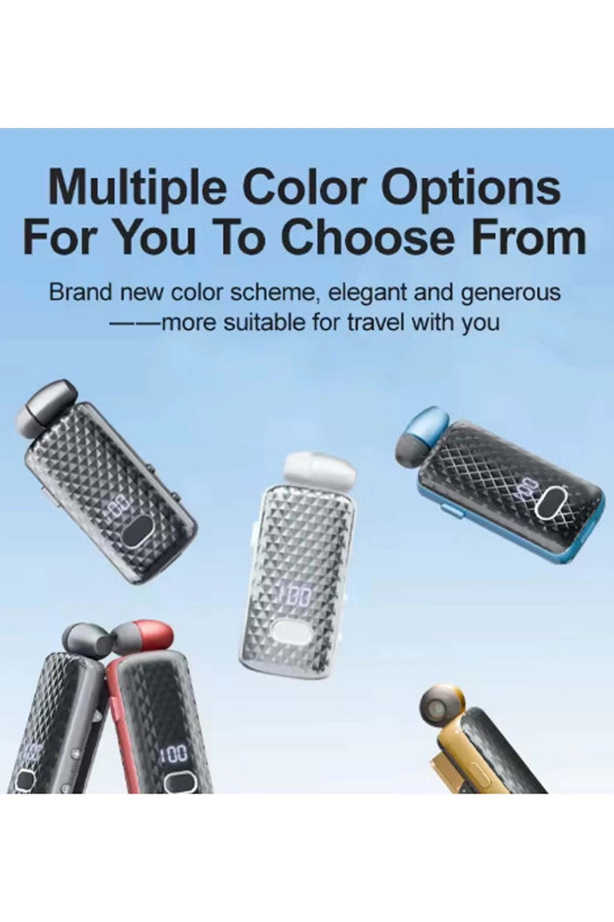 Sıkıca Klipsli tasarlanmış, kolayca ve rahatça Kabloyu otomatik olarak geri almak için tek tıklamayla Arayanın Kimlik numarası istemi ve Titreşim İstemi Çoğu akıllı telefonla uyumludur bluetooth Güç LED ekranı 15 dakikalık hızlı şarj desteği 10 saatlik kullanım zaman