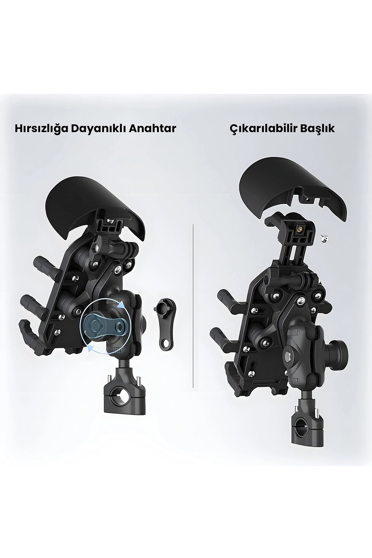 - Gidon Bağlantılı Güneş Ve Yağmur Korumalı 360° Derece Ayarlanabilir Motosiklet Bisiklet Telefon Tutucu