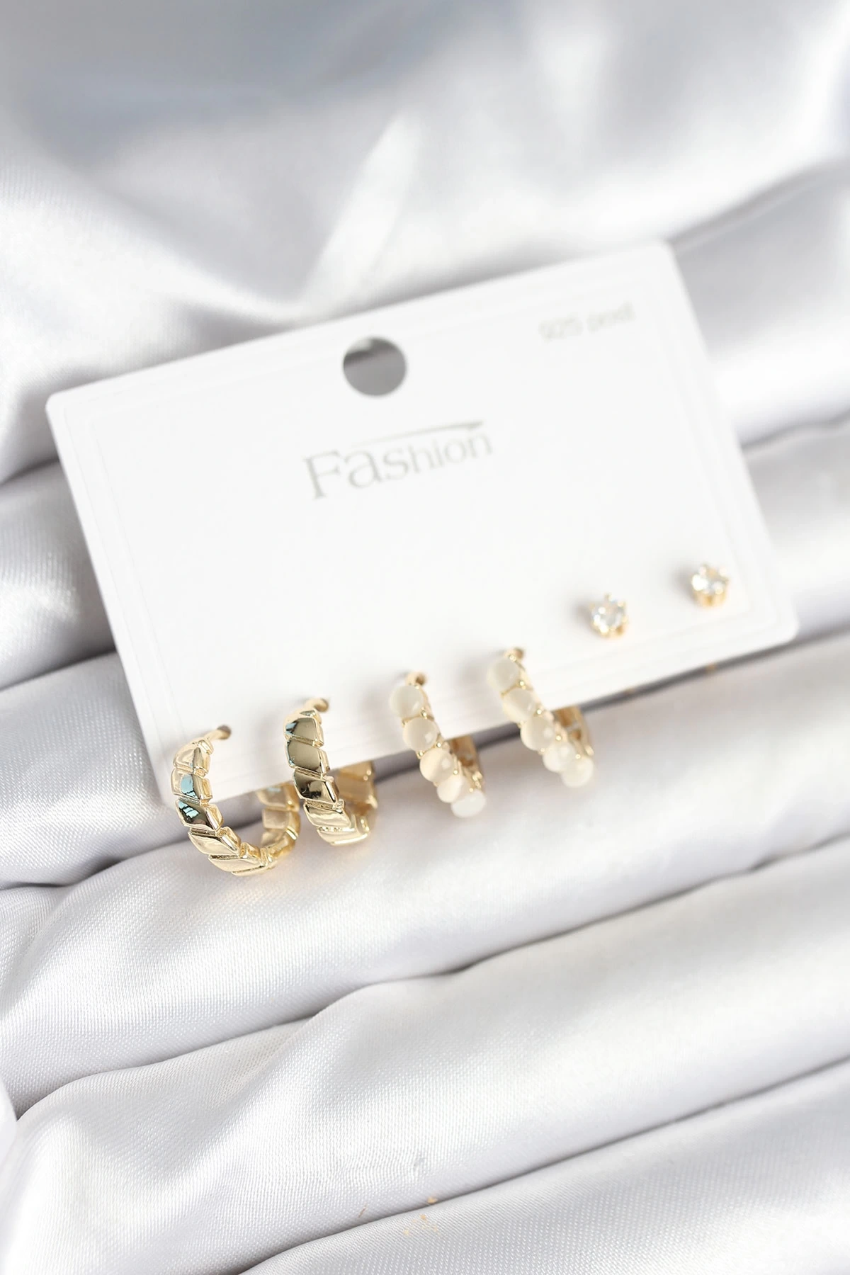 Gold Renk Pirinç Halka 925 Ayar Gümüş Çivili Kadın Küpe Seti