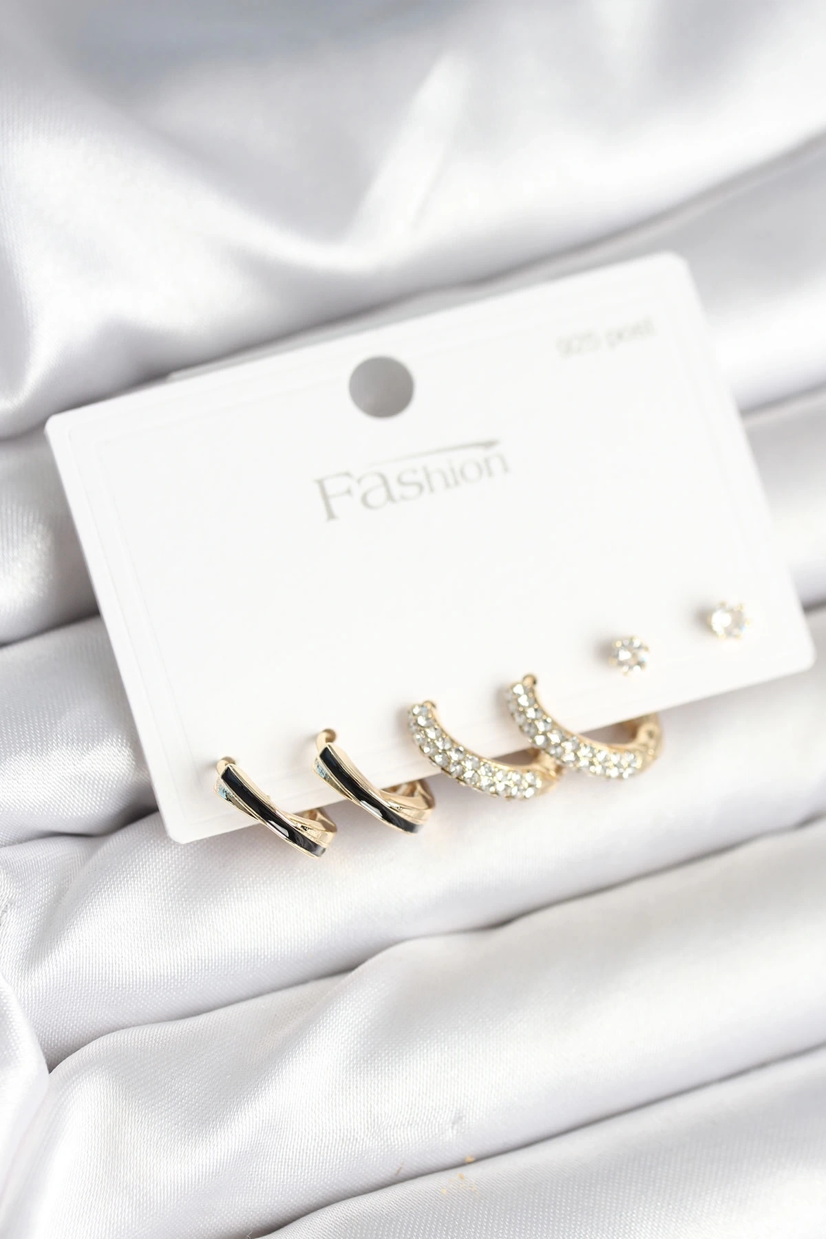 Gold Renk Pirinç Zirkon Taşlı 925 Ayar Gümüş Çivili Kadın Küpe Seti
