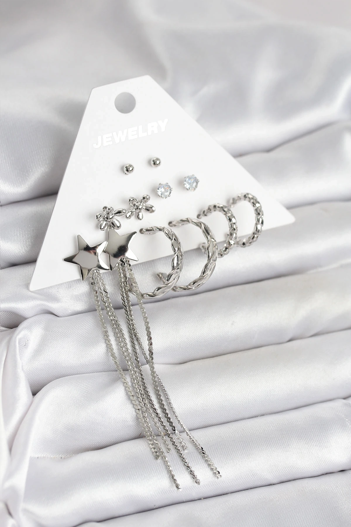 Gümüş Renk Pirinç 6 Çift Kadın Küpe Seti