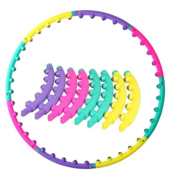 MASAJ BİLYELİ HULAHOPÜrün ÖzellikleriMasaj bilyeli hulahop, formda kalmak ve vücut şekillendirmek isteyenler için mükemmel bir egzersiz aracıdır. Düzenli kullanımda bel ve karın bölgesindeki yağların yakılmasına yardımcı olur, kasları sıkılaştırarak fit bir görünüm kazandırır. İç kısmında yer alan masaj bilyeleri, egzersiz sırasında kan dolaşımını hızlandırır ve vücuda masaj etkisi yaparak rahatlama sağlar. Renkli ve modüler tasarımı sayesinde kolayca takılıp sökülebilir, taşıması ve saklaması pratiktir. Dansla birleştirilen hulahop egzersizleri hem eğlenceli hem de yüksek kalori yakımı sağlar. Saatte 700 kaloriye kadar enerji harcatabilir. Günde 1-2 kez, 20 dakikayı geçmeyecek şekilde düzenli kullanım önerilir. Sağlam plastik yapısı uzun ömürlü kullanım sunarken 98 cm çapıyla hem başlangıç hem ileri seviye kullanıcılar için uygundur.Paket İçeriği1 adet Masaj Bilyeli Hulahop