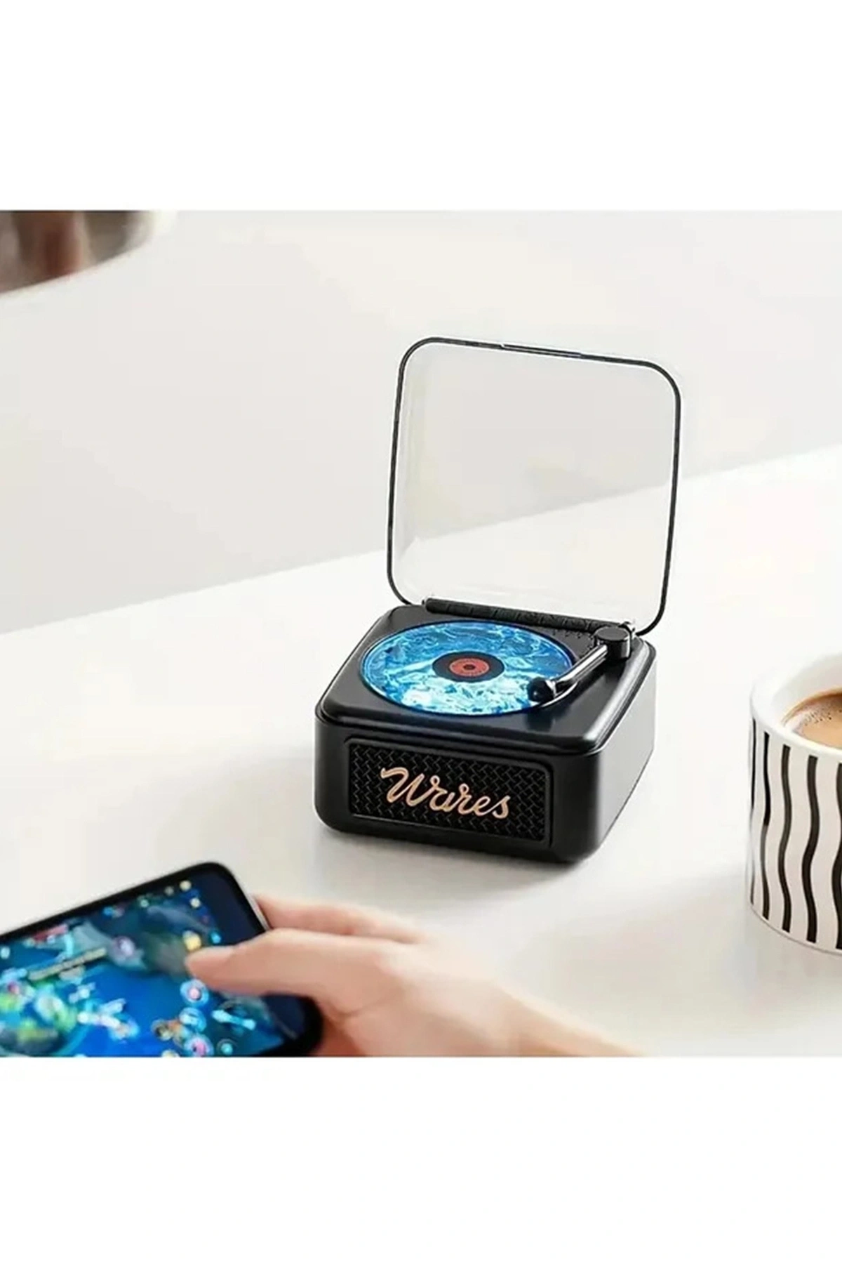 Nostalji Mini Plak Görünümlü Radyolu Bluetooth Hoparlör 3d Ses Dalgası Retro Müzik Plak Siyah