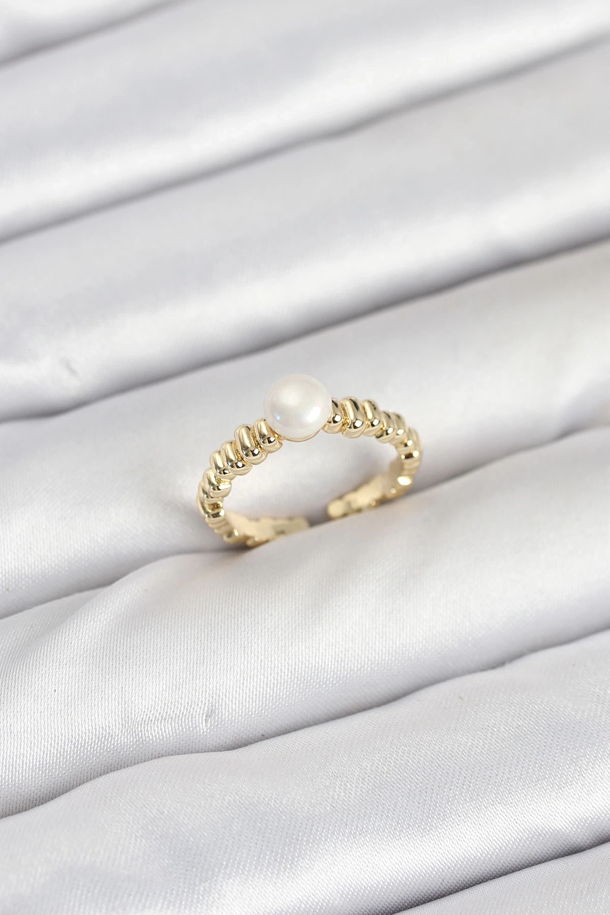 • Pirinç Gold Renk Göbek İnci Model Kadın Yüzük