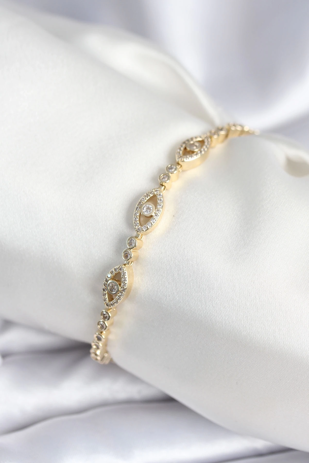 • Pirinç Gold Renk Göz Model Kadın Bileklik