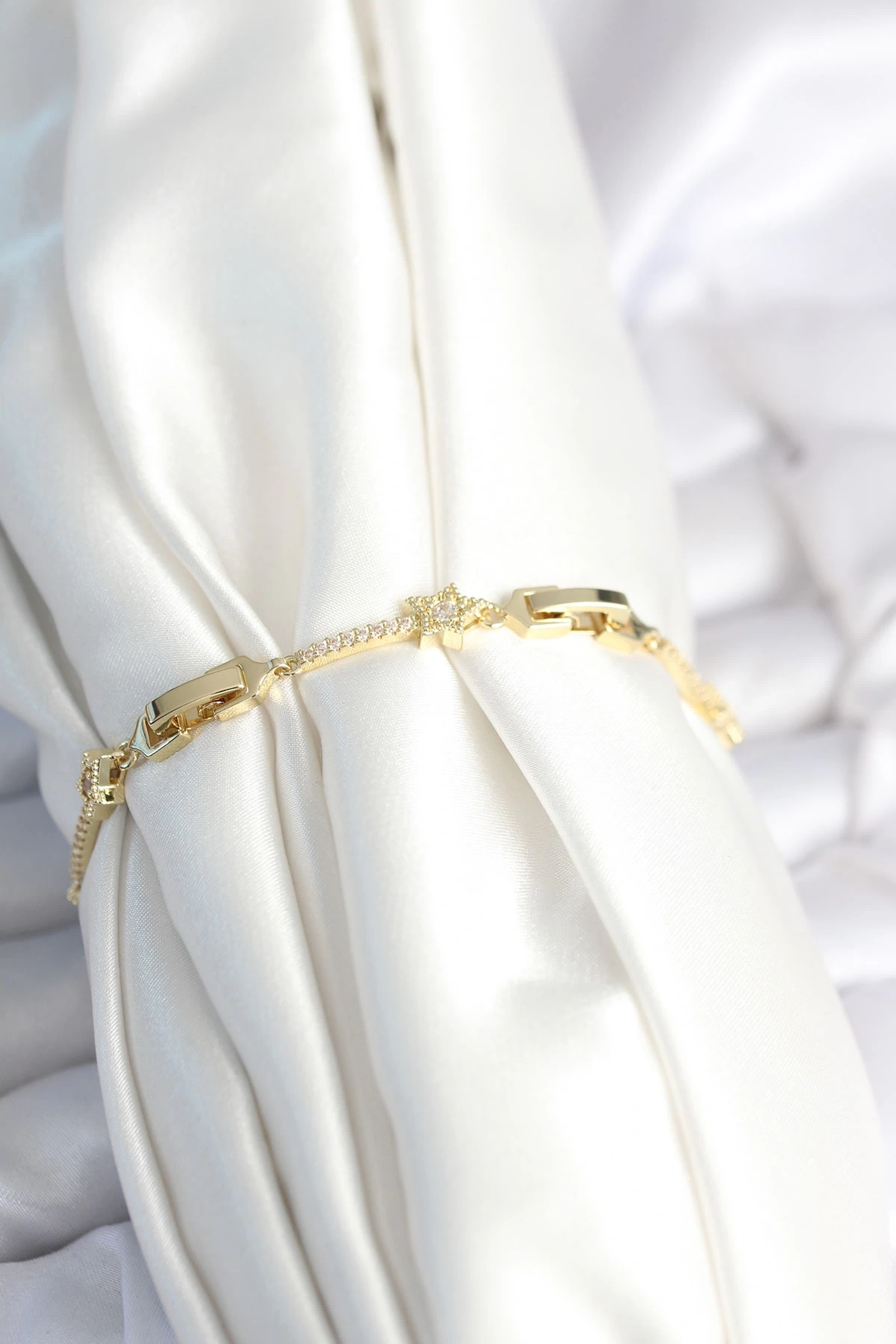• Pirinç Gold Renk Halley Yıldız Model Kadın Bileklik