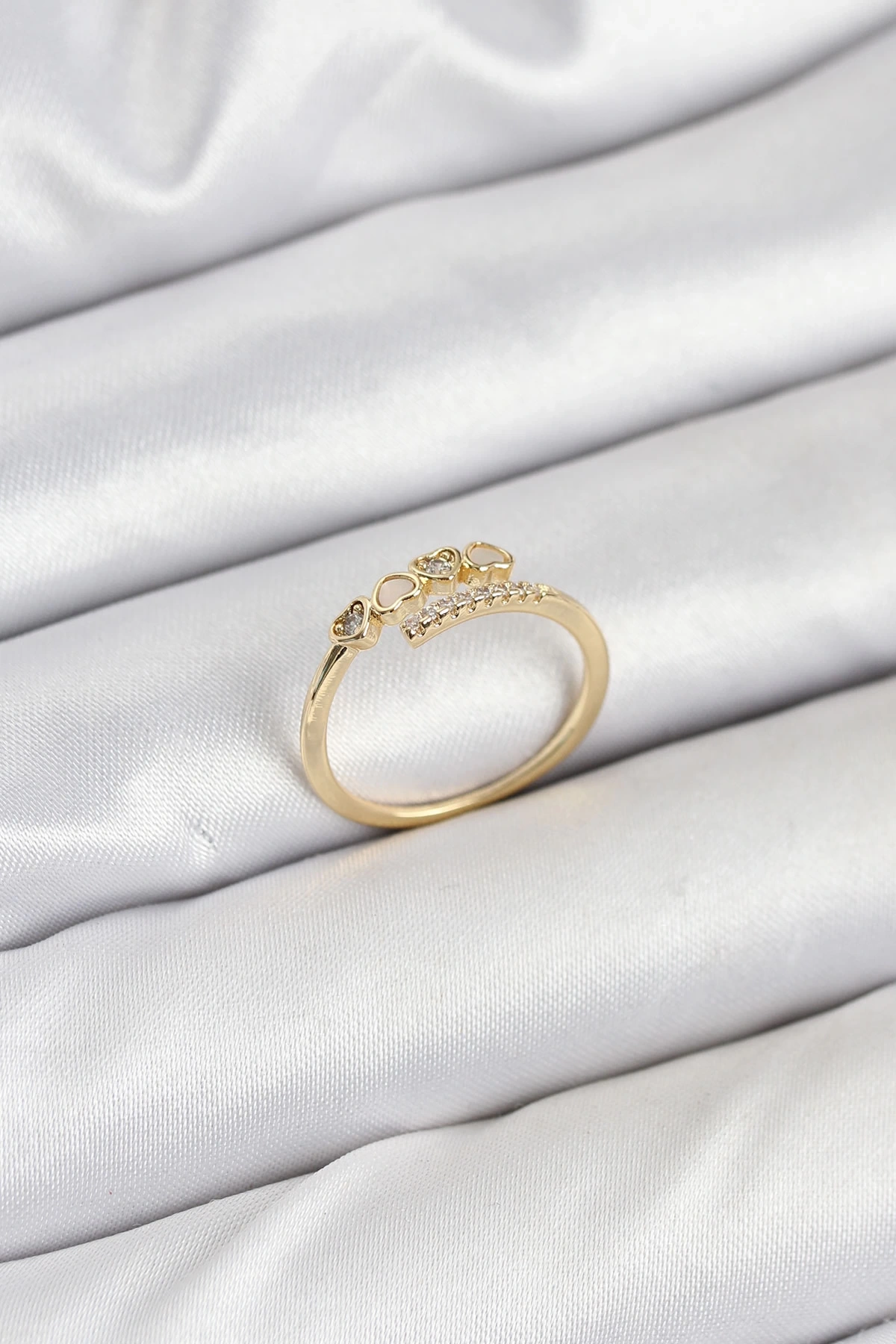 • Pirinç Gold Renk Kalpli Detaylı Zirkon Taşlı Kadın Yüzük