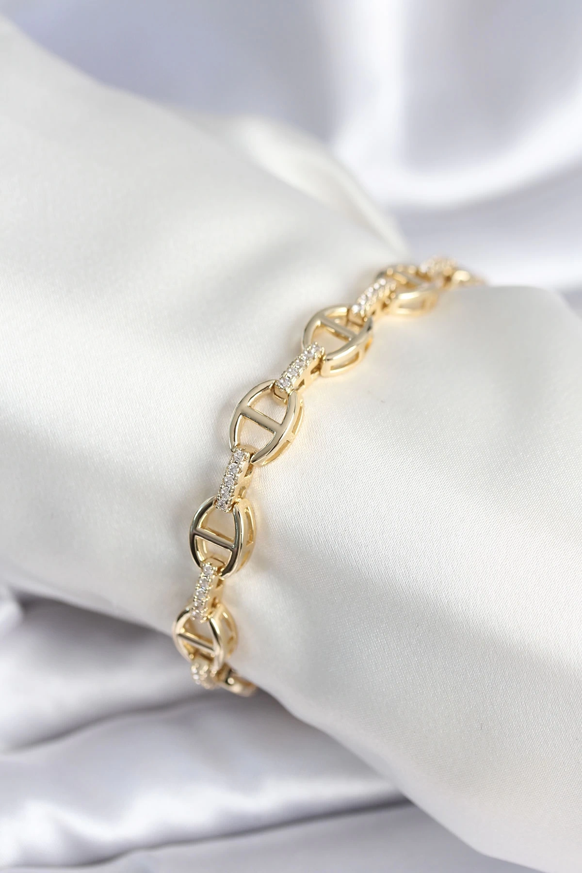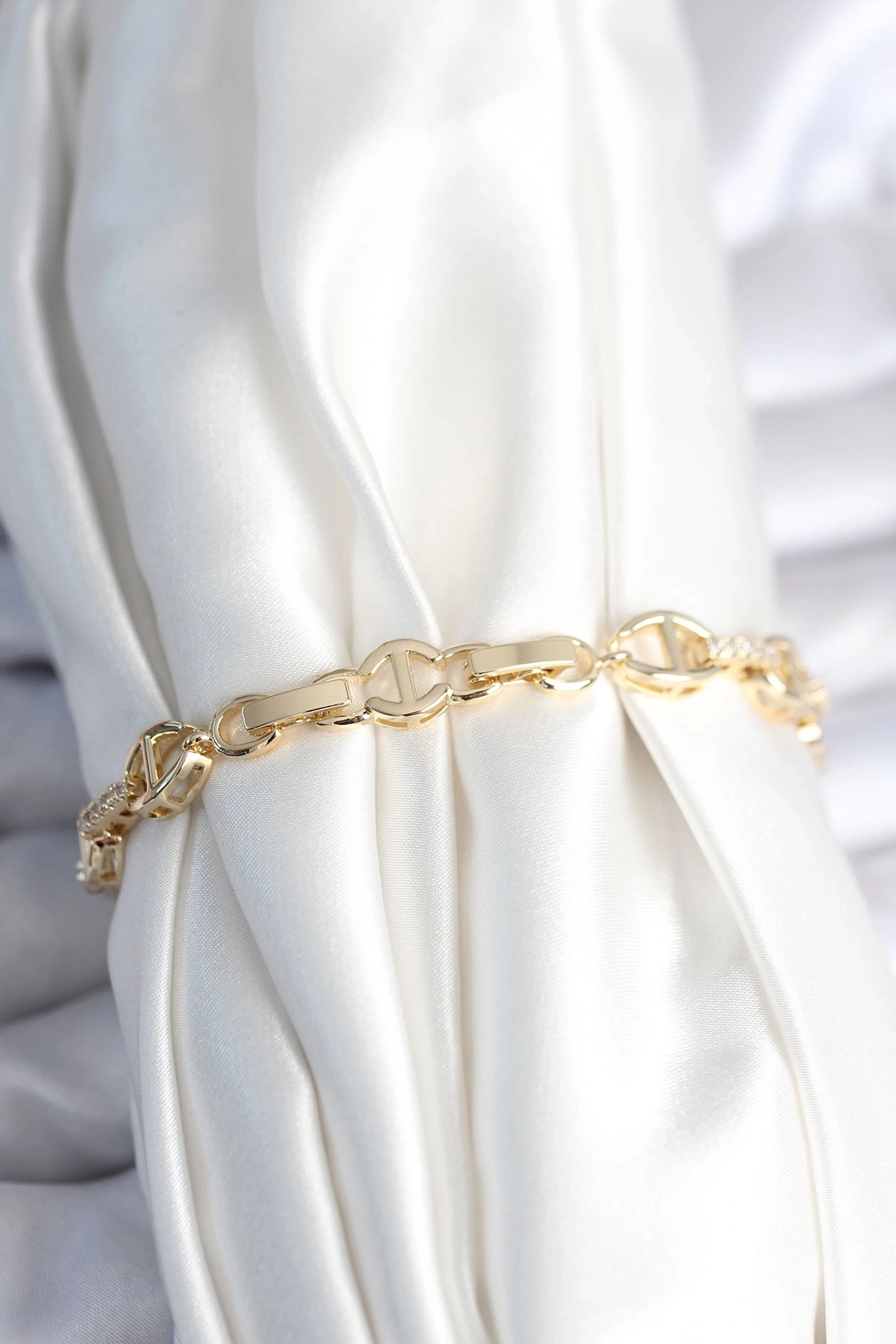 • Pirinç Gold Renk Parçalı Zincir Model Kadın Bileklik
