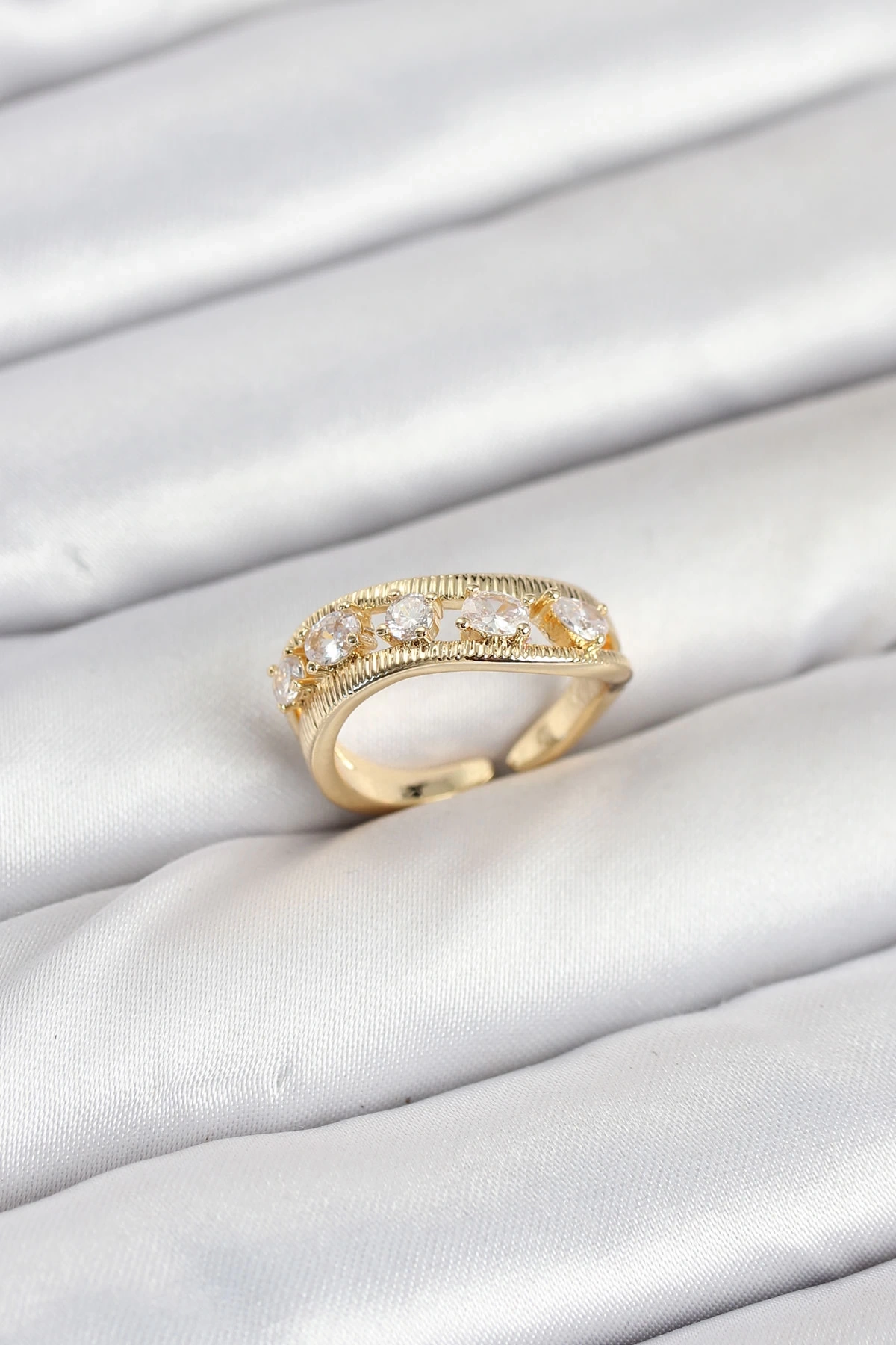 • Pirinç Gold Renk Zirkon Taşlı Kadın Yüzük