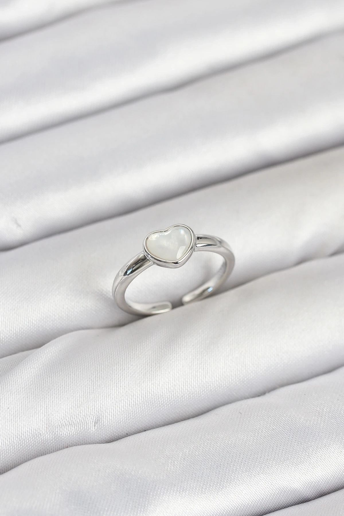 • Pirinç Gümüş Renk Kalpli Kadın Yüzük