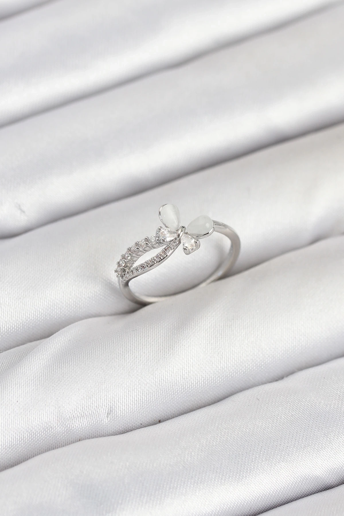 • Pirinç Gümüş Renk Kelebek Zirkon Taşlı Kadın Yüzük
