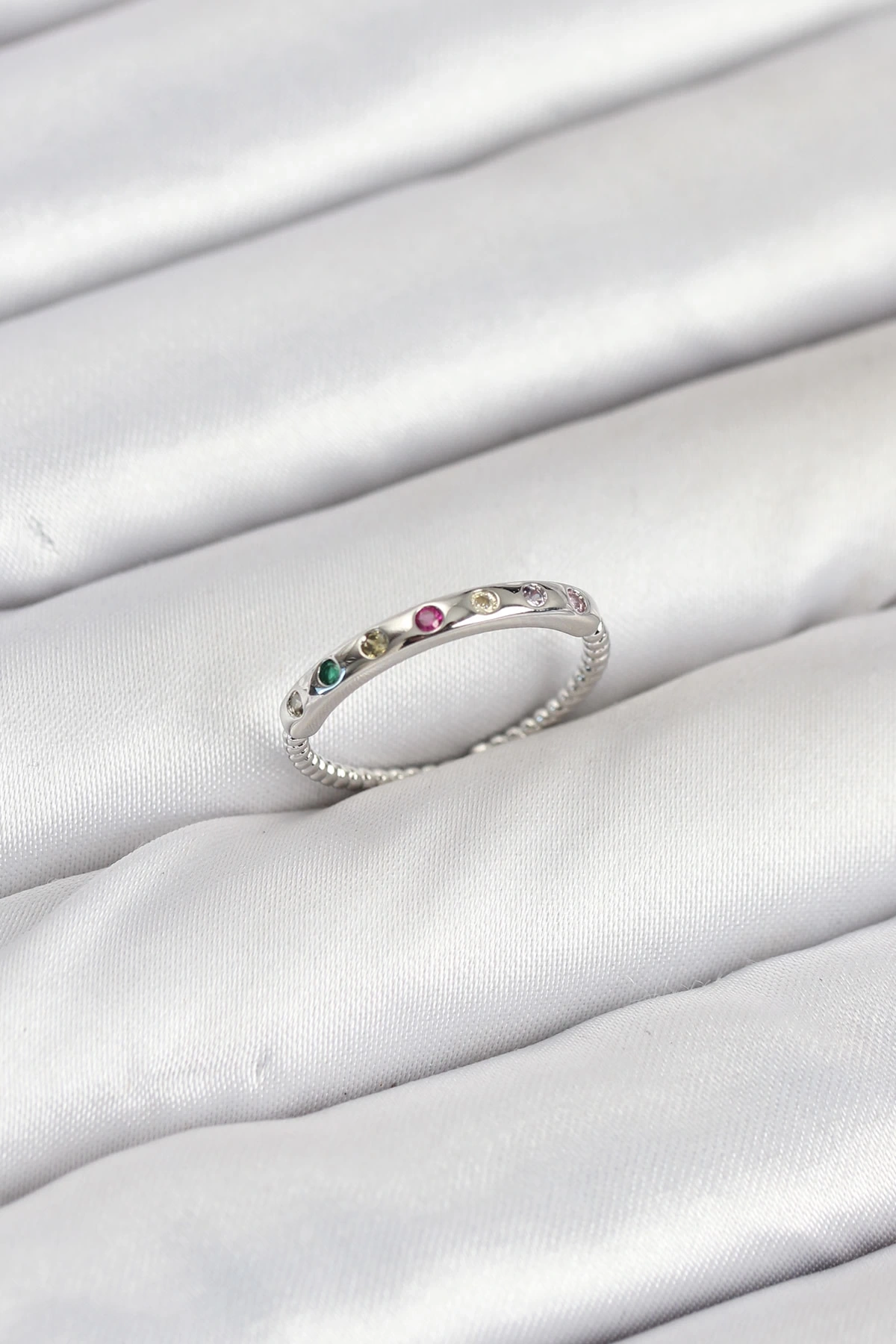 • Pirinç Gümüş Renk Renkli Zirkon Taşlı Kadın Yüzük