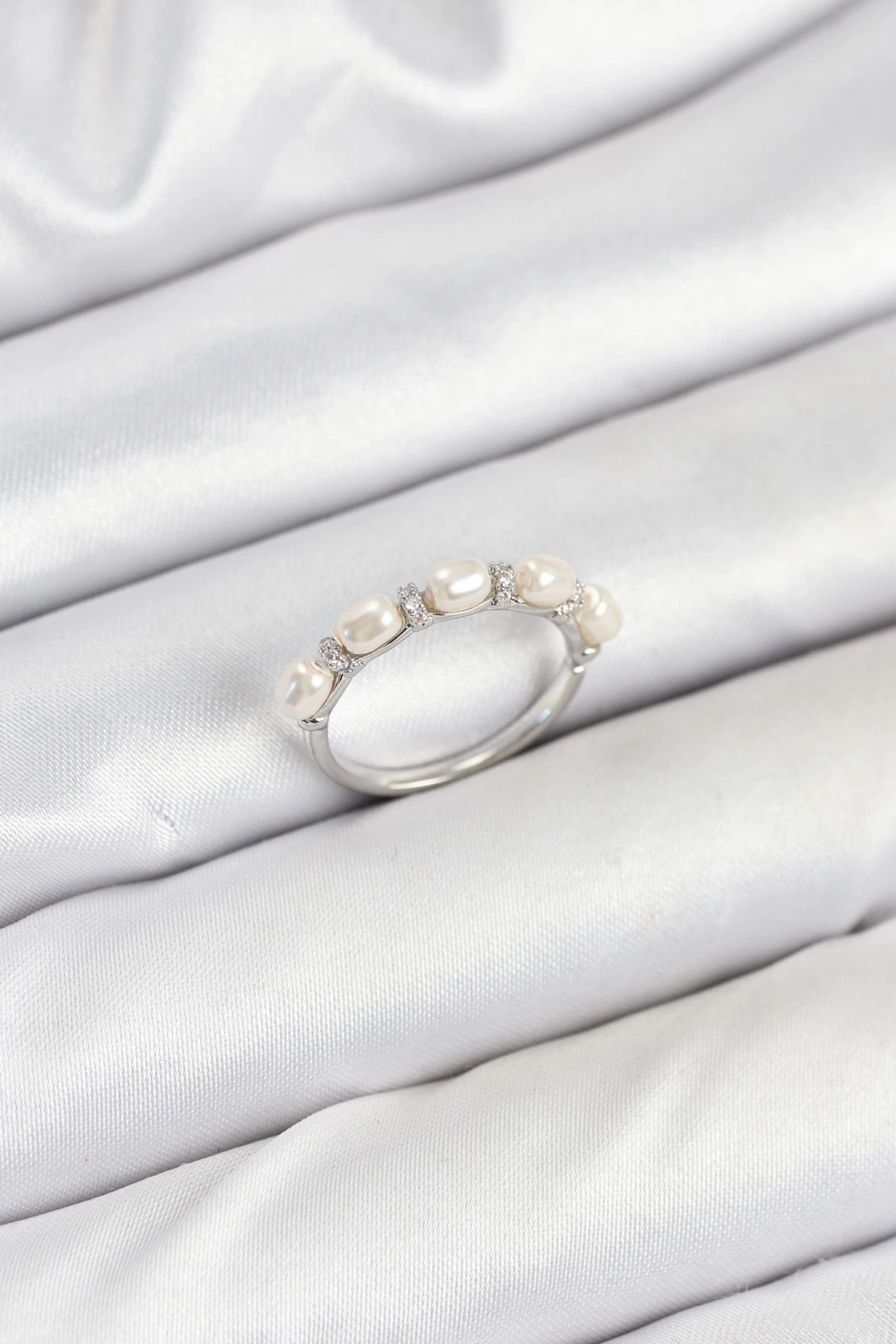 • Pirinç Gümüş Renk Sıralı İncili Kadın Yüzük