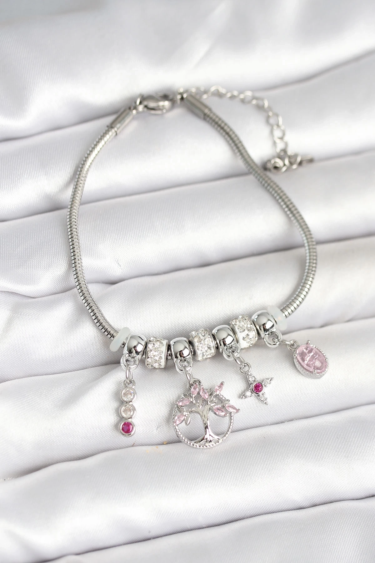 • Pirinç Gümüş Renk Yaşam Ağacı Charmlı Kadın Bileklik