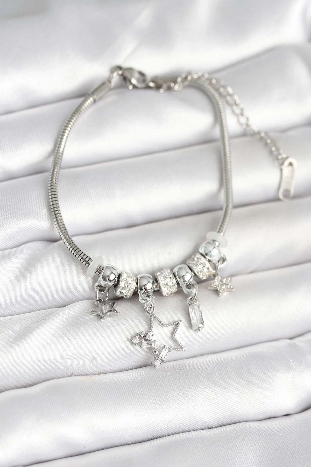 • Pirinç Gümüş Renk Yıldız Charmlı Kadın Bileklik
