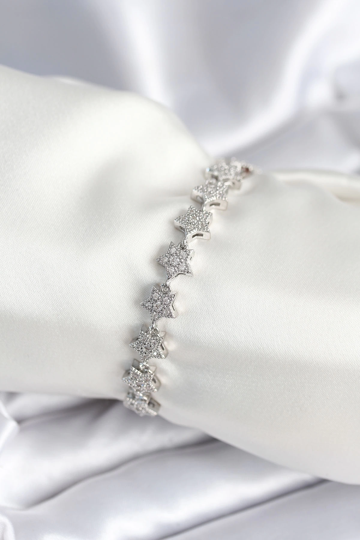 • Pirinç Gümüş Renk Yıldız Model Kadın Bileklik