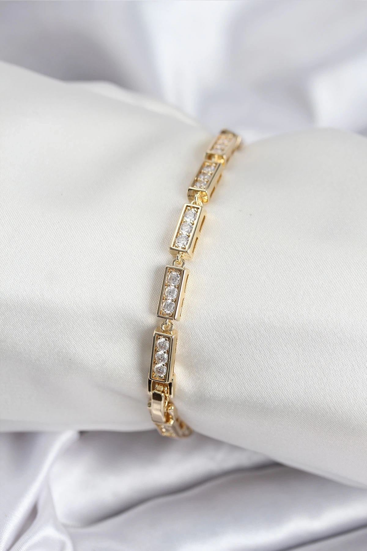 • Pirinç VIP Seri Gold Renk Parçalı Model Kadın Bileklik