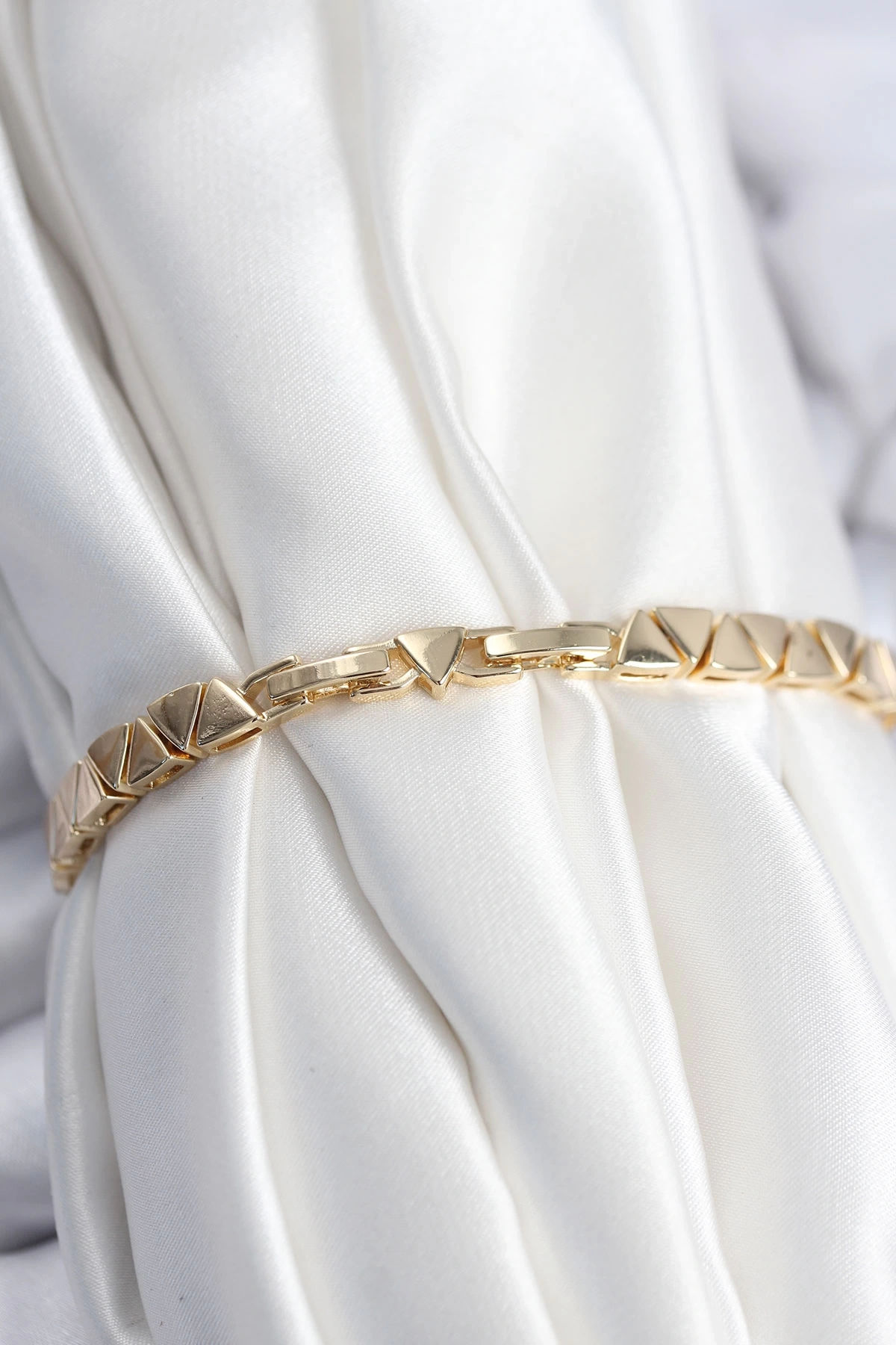 • Pirinç VIP Seri Gold Renk Sıralı Üçgen Model Kadın Bileklik
