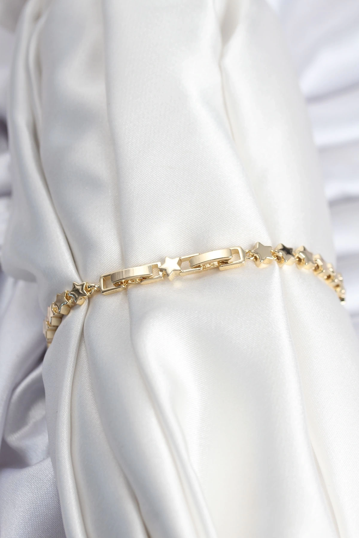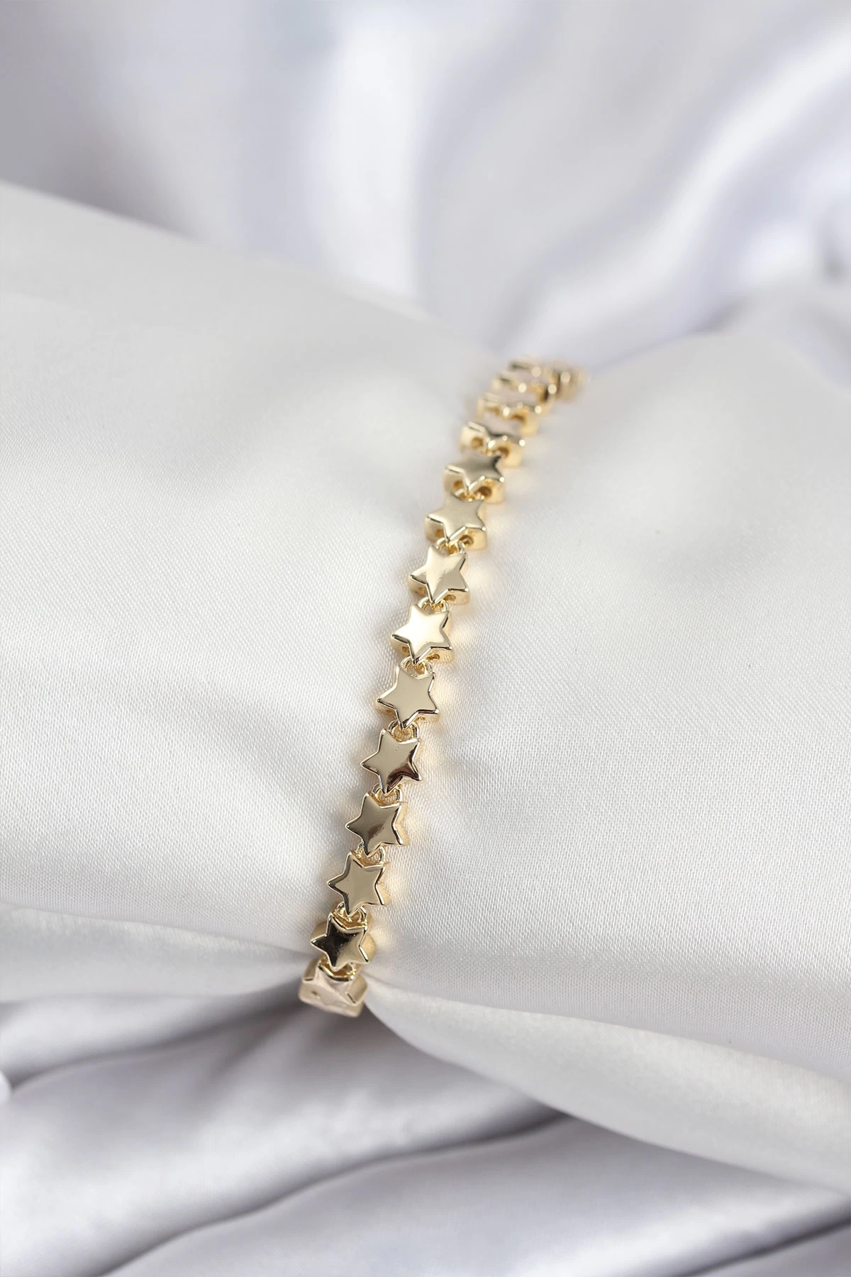 • Pirinç VIP Seri Gold Renk Sıralı Yıldız Model Kadın Bileklik