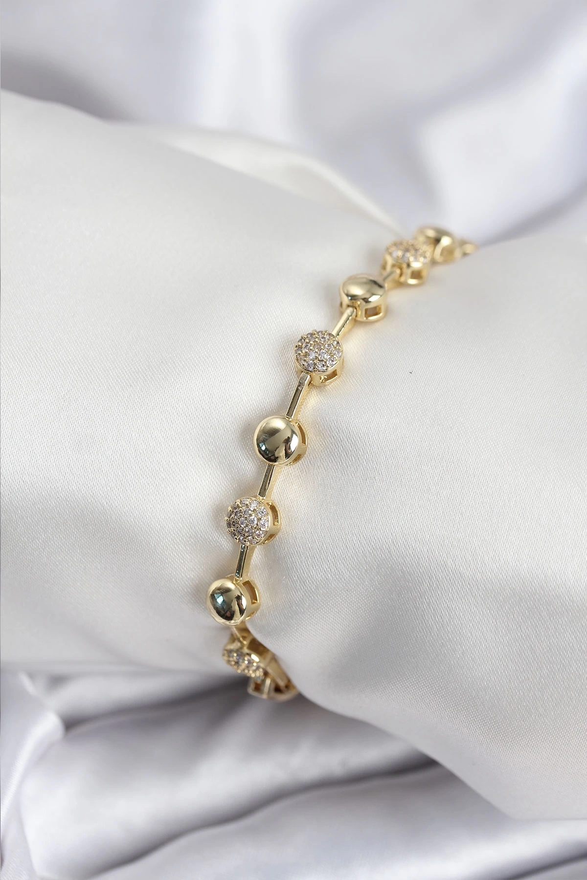 • Pirinç VIP Seri Gold Renk Topçuk Model Kadın Bileklik