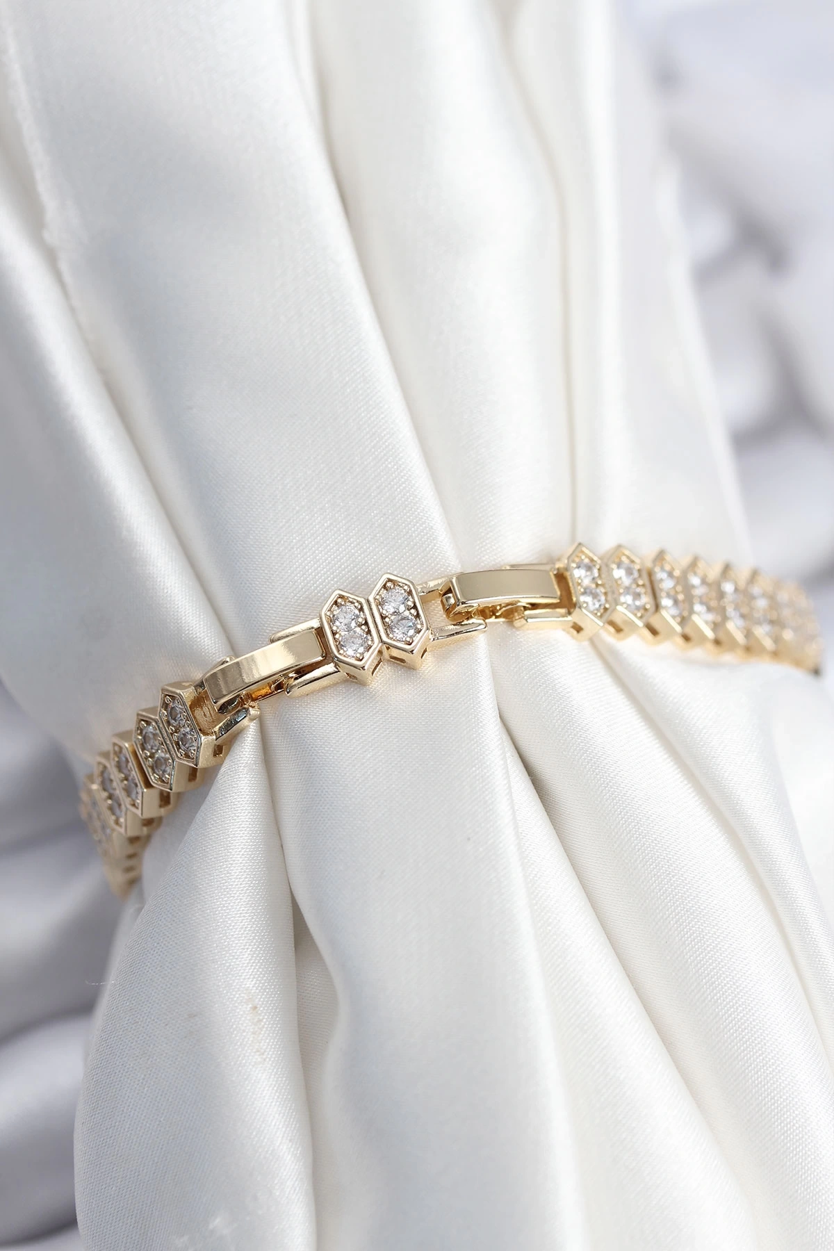 • Pirinç VIP Seri Gold Renk Zirkon Taşlı Kadın Bileklik