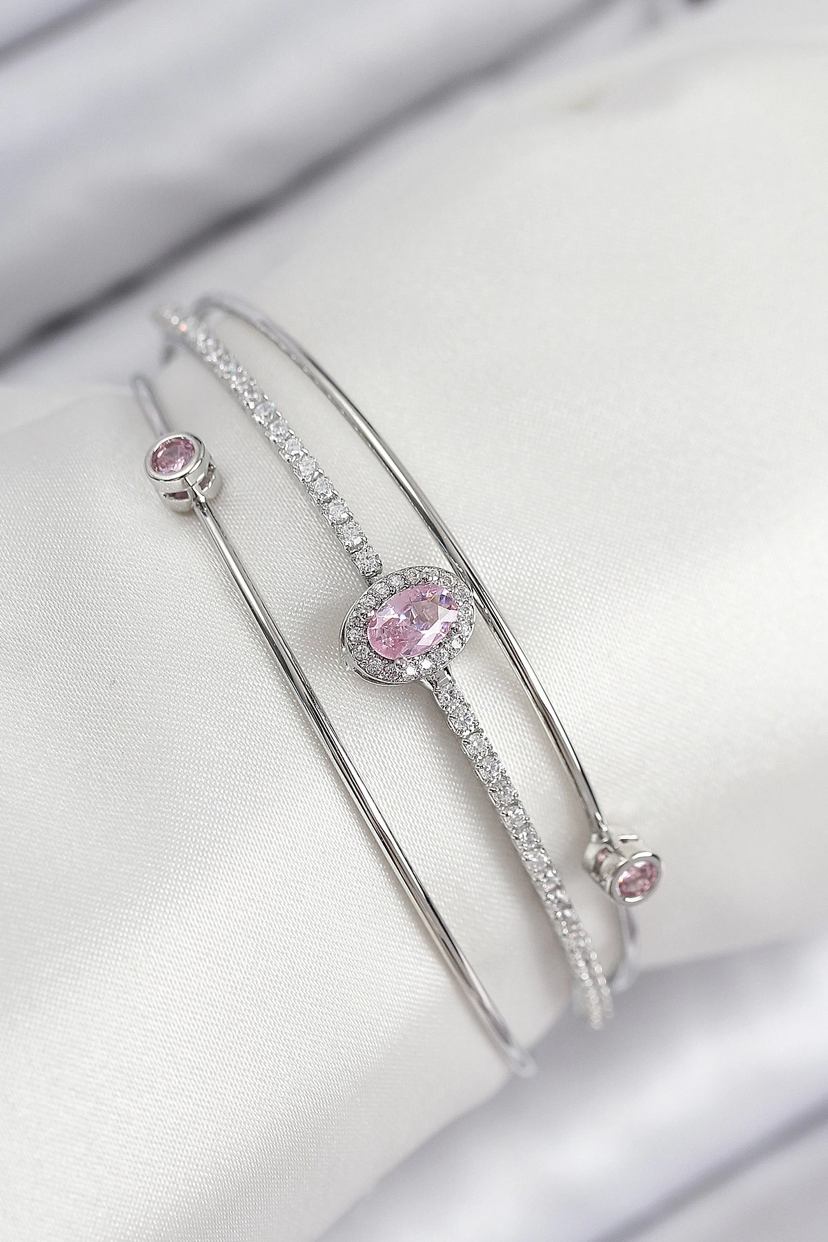 • Pirinç Zirkon Taşlı Baget Model Gümüş Renk Kadın Bileklik