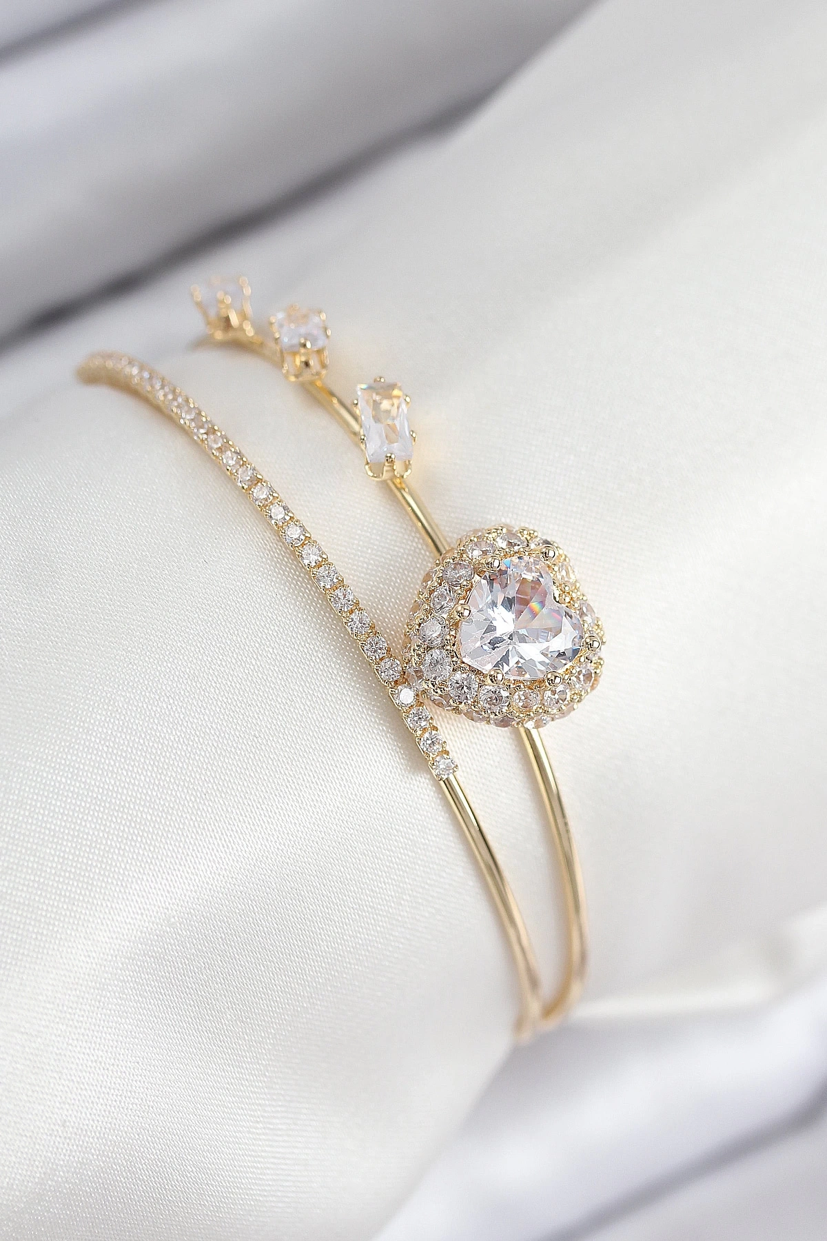 • Pirinç Zirkon Taşlı Kalp Model Gold Renk Kadın Bileklik