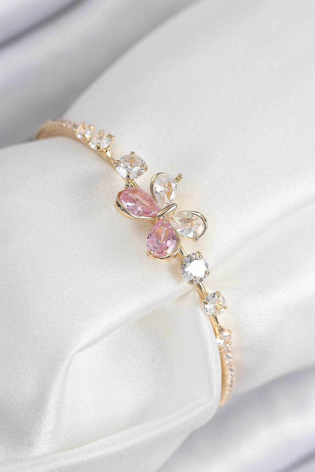 • Pirinç Zirkon Taşlı Kelebek Model Gold Renk Kadın Bileklik