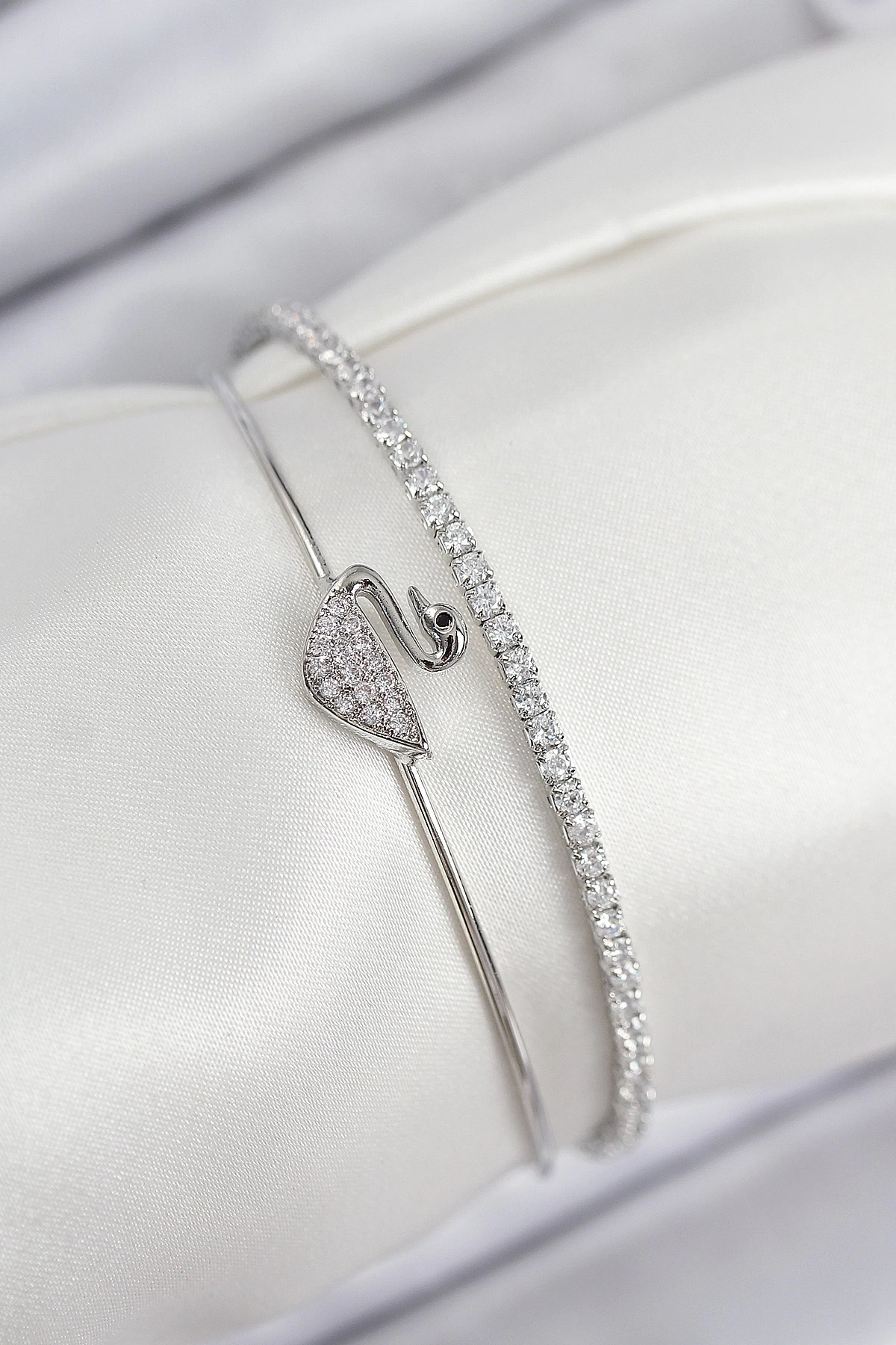 • Pirinç Zirkon Taşlı Kuğu Model Gümüş Renk Kadın Bileklik
