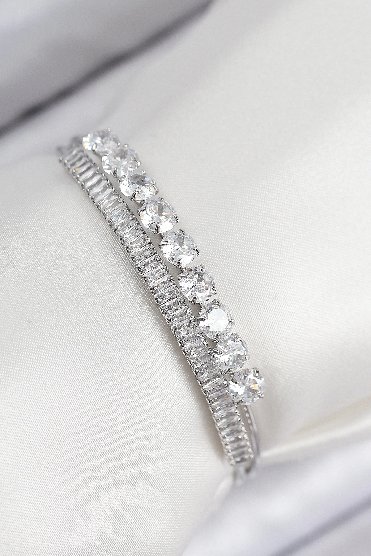 • Pirinç Zirkon Taşlı Su Yolu Model Gümüş Renk Kadın Bileklik