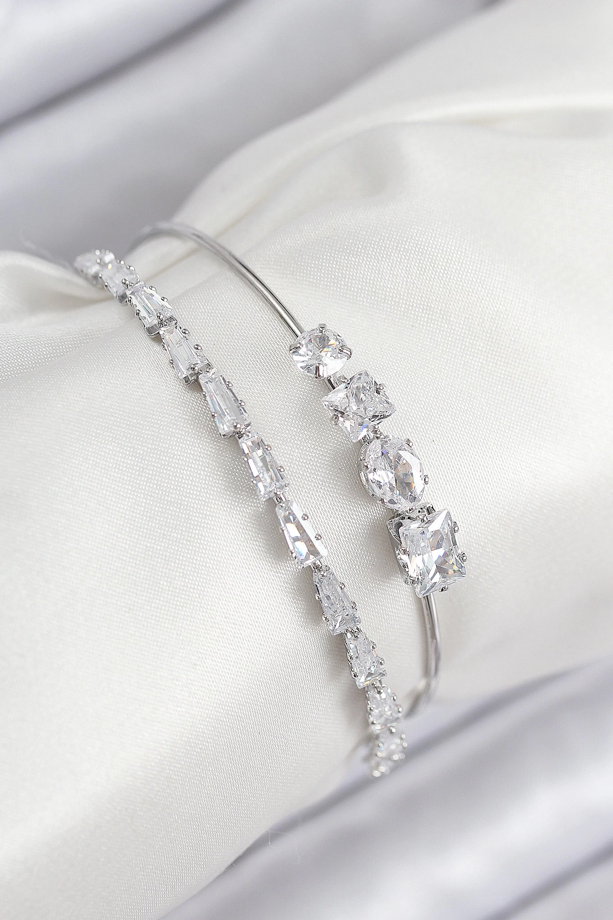• Pirinç Zirkon Taşlı Su Yolu Model Gümüş Renk Kadın Bileklik