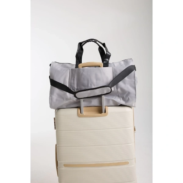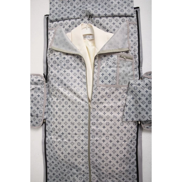 PRATİK ELBİSE KILIFI SEYAHAT ÇANTASIÜrün ÖzellikleriPratik elbise kılıfı seyahat çantası, iş seyahatlerinde, düğünlerde veya özel davetlerde kıyafetlerinizi kırışmadan ve güvenle taşımanızı sağlar. Akıllı tasarımı sayesinde hem elbise kılıfı hem de seyahat çantası işlevi sunar. Geniş iç hacmi ile takım elbise, gömlek, elbise ve ayakkabılarınızı düzenli şekilde taşıyabilir, yan ceplerinde yer alan ekstra bölmelerle küçük eşyalarınızı da kolayca organize edebilirsiniz.Çanta, dayanıklı malzemesi ile uzun ömürlü kullanım sağlarken, katlanabilir yapısı sayesinde kompakt hale gelerek yerden tasarruf etmenize yardımcı olur. Ayakkabı bölmesi ve yer kaplamayan ekstra ürün cepleri ile işlevsellik sunar. Tekerlekli valizlerin üzerine sabitlenebilen arka kayış detayı, seyahatlerde kolay taşıma imkânı verir.Modern tasarımı ve fonksiyonel yapısı ile bu elbise kılıfı seyahat çantası, özellikle iş insanları, sık seyahat edenler ve özel günlerinde şıklığından ödün vermek istemeyenler için ideal bir tercihtir.Paket İçeriği1 adet Pratik Elbise Kılıfı Seyahat Çantası