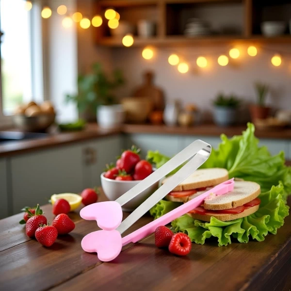 SEVİMLİ KALPLİ MAŞAÜrün ÖzellikleriSevimli kalpli maşa, mutfakta hem şık hem de pratik bir yardımcı olarak tasarlanmıştır. Paslanmaz çelik gövdesi ve silikon uçları sayesinde dayanıklı, güvenli ve uzun ömürlü bir kullanım sunar. Isıya dayanıklı yapısıyla yiyecekleri rahatça kavrayabilir, silikon uçları sayesinde yüzeylere zarar vermeden kullanım imkânı sağlar. 13 cm uzunluğu ve 2,8 cm genişliği ile kompakt boyutlarda olup, çerez, salata, pasta, ekmek ya da küçük atıştırmalıkları servis etmek için idealdir. Pembe kalp detaylarıyla estetik ve sevimli bir görünüme sahiptir. Temizlemesi son derece kolay olup elde veya bulaşık makinesinde yıkanabilir. Hem günlük kullanımda hem de özel sunumlarda mutfağınıza zarafet katar.Paket İçeriği1 adet Sevimli Kalpli Maşa